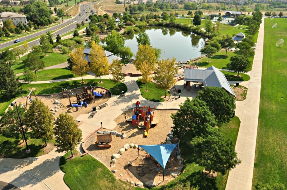 Redstone Park in Highlands Ranch is a premier community destination with a variety of amenities, including sports fields, a playground, tennis courts, skate pone, a fishing pond, and walking trails. Its well-maintained spaces and scenic views make it perfect for recreation, relaxation, and family fun.